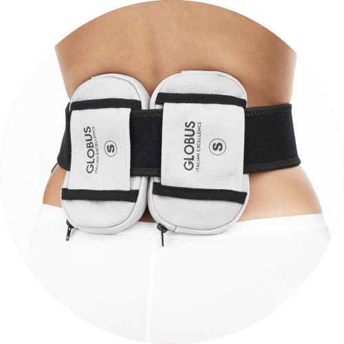 Fixam-se ao corpo passando uma banda elástica por baixo das aberturas (na horizontal ou na vertical) e fechando-a sobre si própria. (Banda de fixação com velcro incluída)